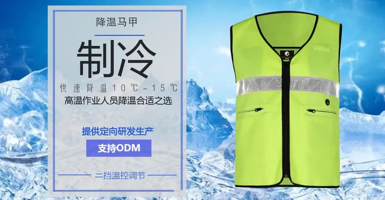 最后,为大家推荐一款能快速降温15℃的制冷降温马甲,以可循环使用的特制冰包为制冷源,顺利获得冰水循环技术,将凉感均匀传递至马甲全身,二档温控调节可自由控制到舒适的体感温度,单次制冷时长达到4小时,重量仅为2.2kg,能有效解决高温天气下工人的降温难题。